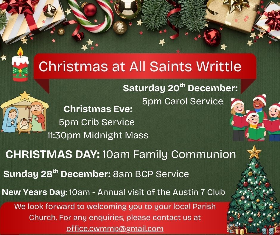 This year, there will be 2 opportunities for you to bring your toys to Writtle All Saints Church: Sunday 7 December at the 10am service; and Tuesday 9 December at the 7pm Scout & Guides Carols Service.